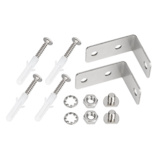 Комплект держателей профиля IP-LINE-4050 для накладного монтажа на стену. В комплекте: держатель - 2 шт., шуруп с дюбелем - 4 шт., гровер - 2 шт., гайка - 2 шт., винт с площадкой - 2 шт. Материал - сталь. Цена за комплект.